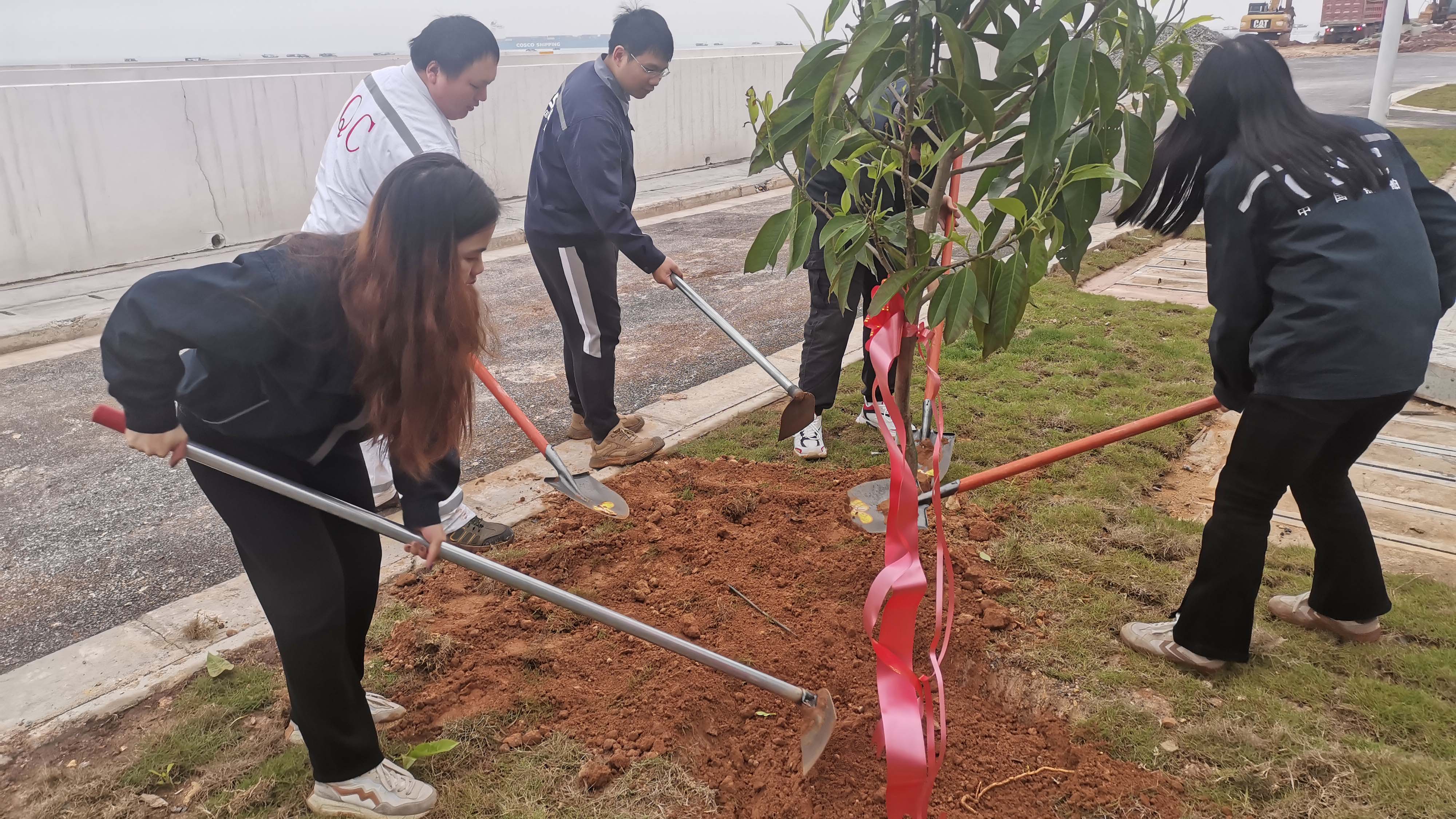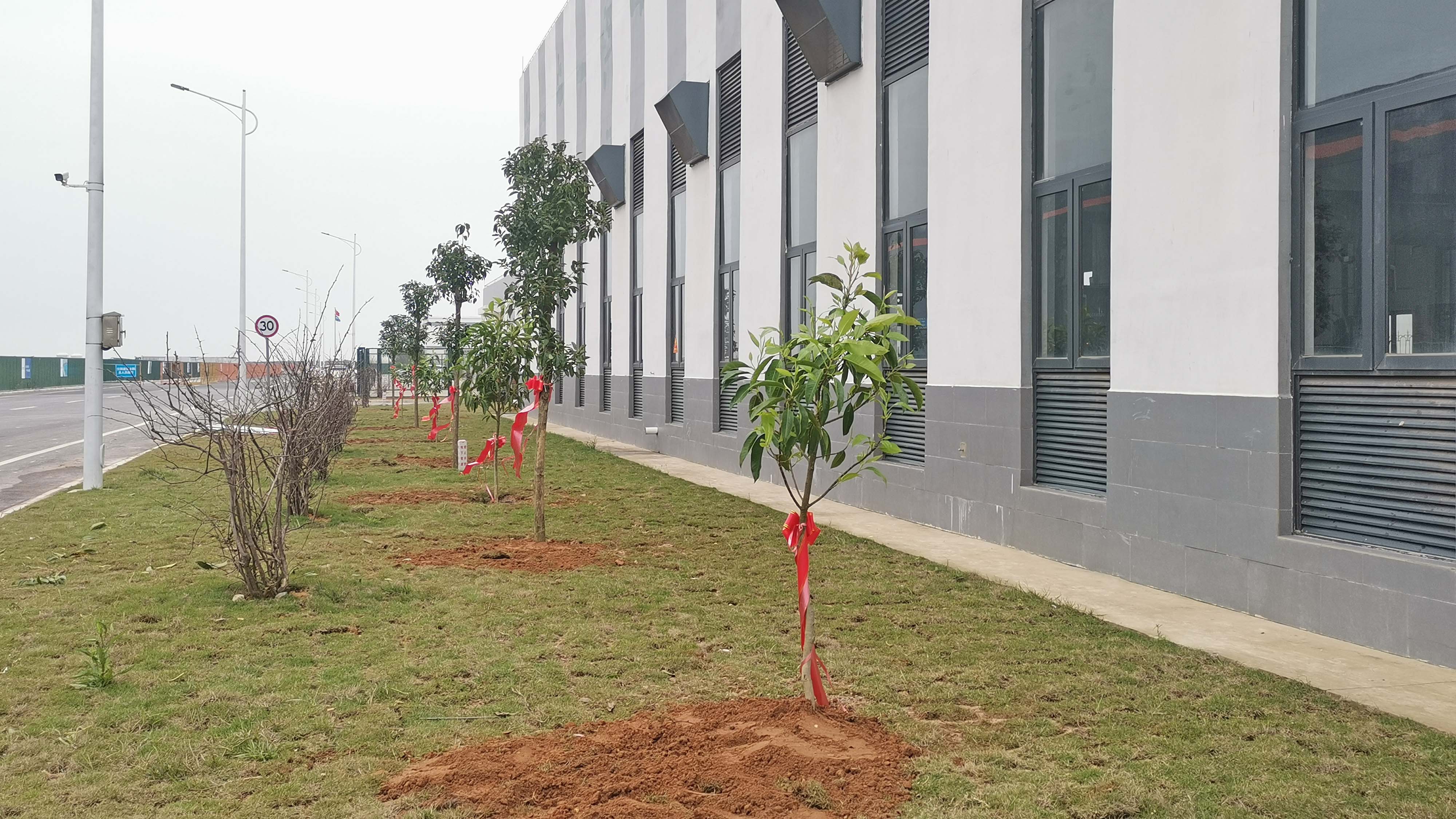 活動現場,大家分工有序,默契配合,有的鏟土、有的扶苗、有的踩實修整,個個干勁十足,呈現出一片熱火朝天的勞動場景。40棵樹苗僅用了半個小時就全部種植完畢,昂首挺立、整齊劃一的屹立在廠區,為春日里的廠區增添了一抹綠意和盎然生機。