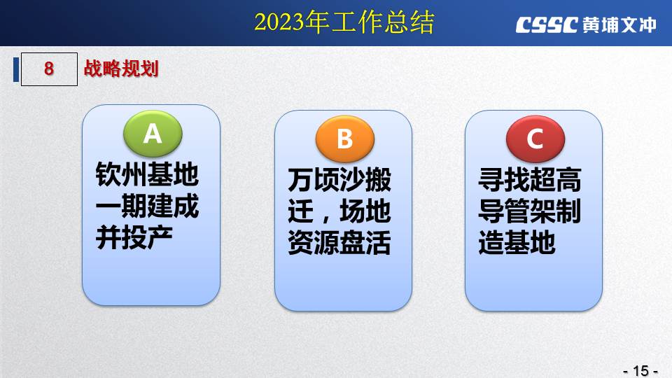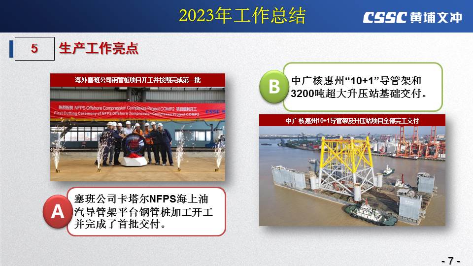 七、進一步明確發展方向,在抓好海外訂單落地的同時,多元化承接相關產品,如壓力容器、深海養殖平臺等,要組織工作專班團隊跟進新產品市場開拓和工藝技術攻關。