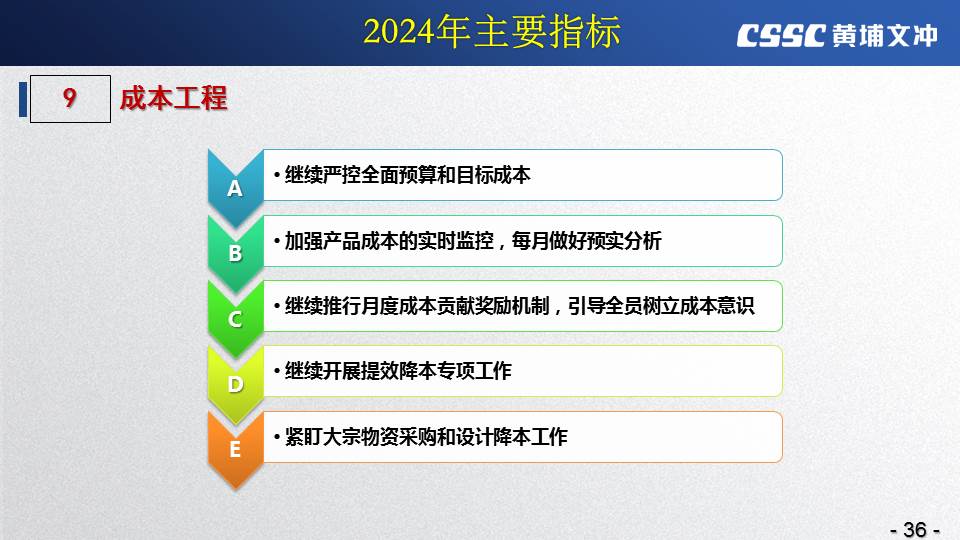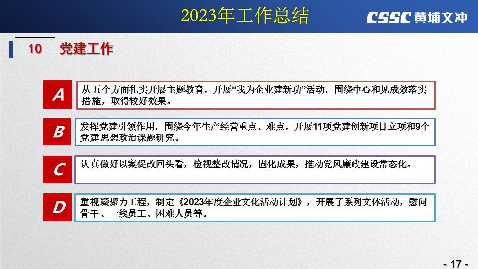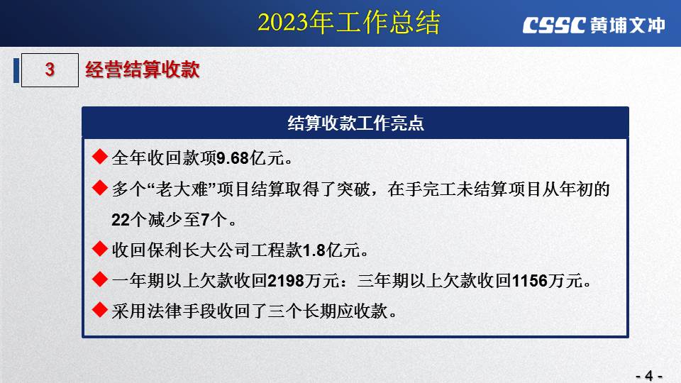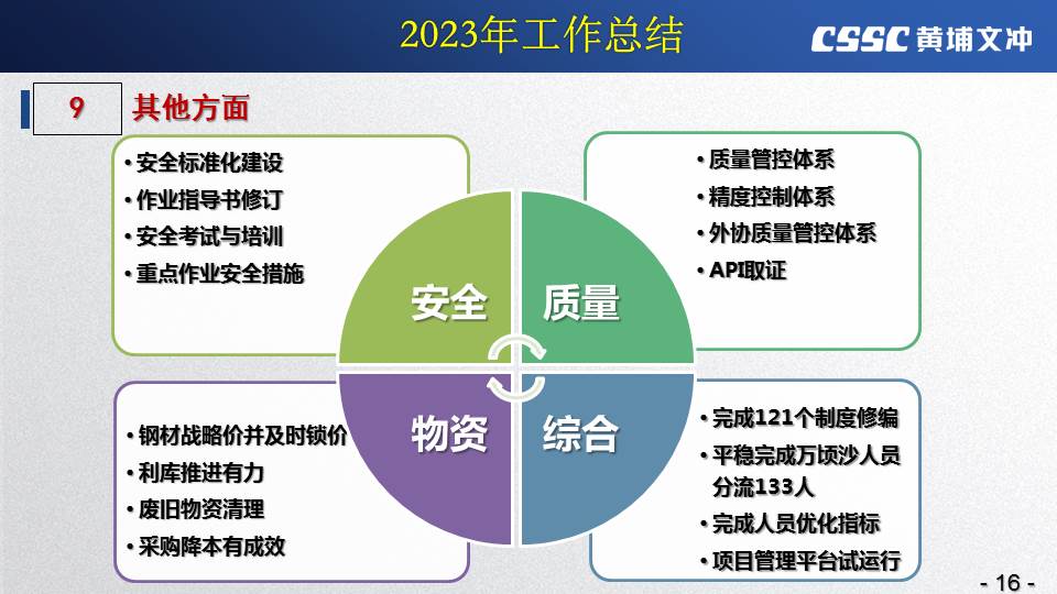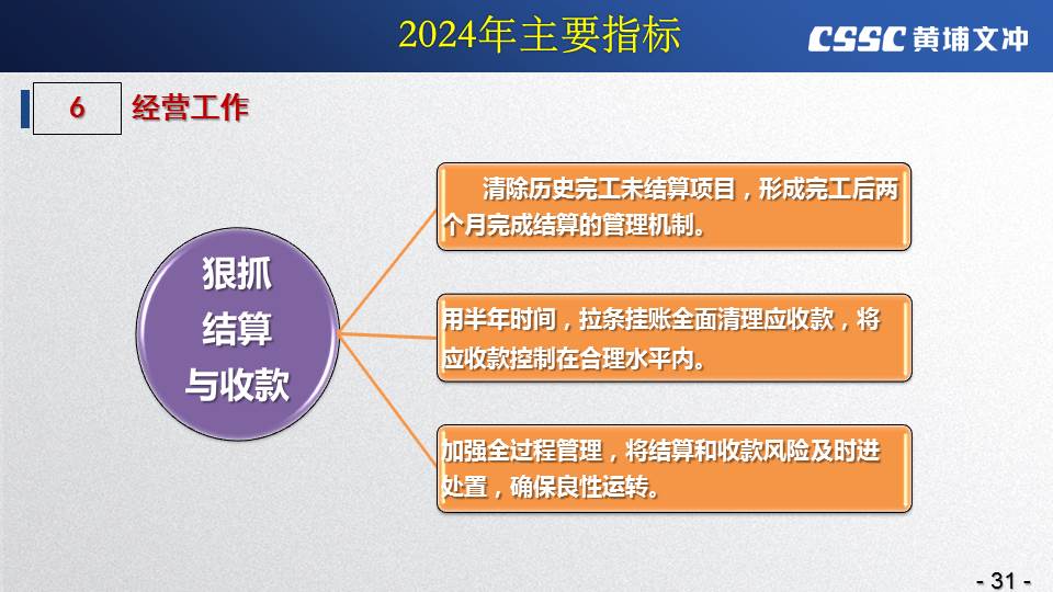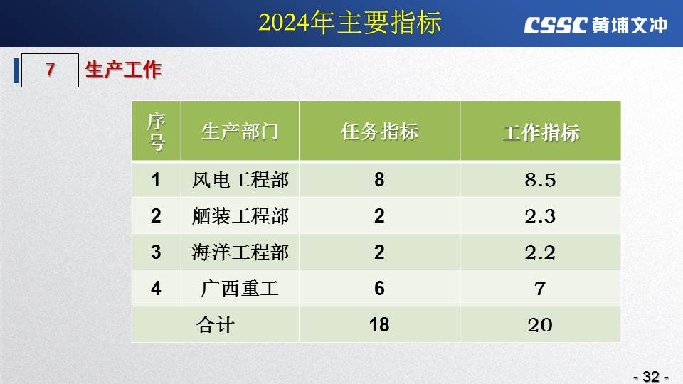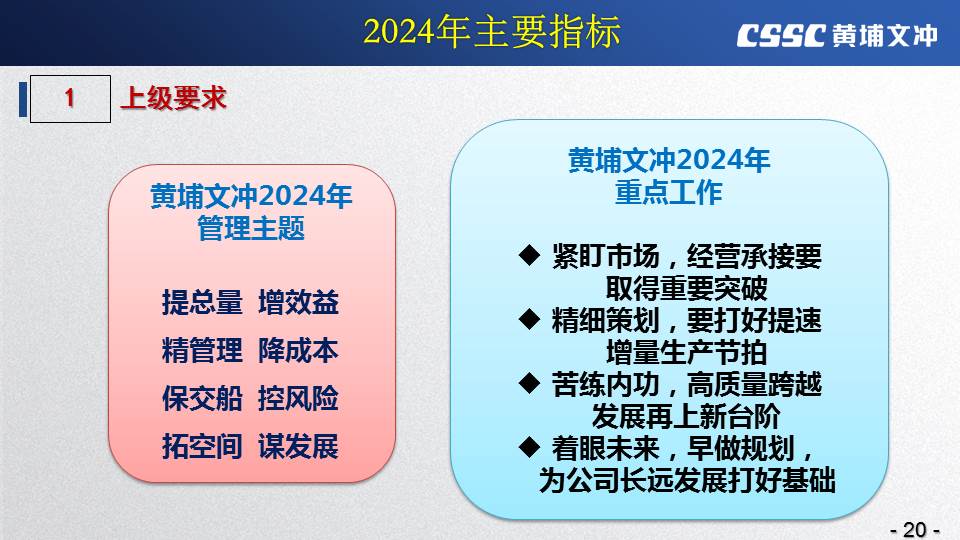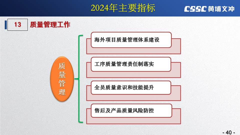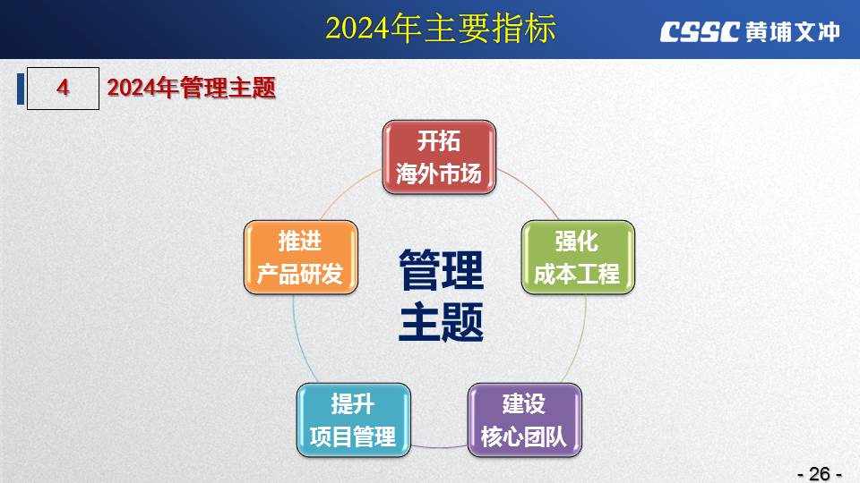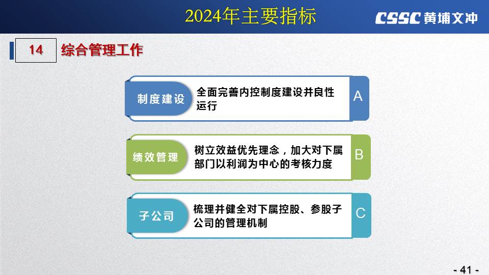 黃埔文沖公司羅兵總經理指出,公司在過去的一年所取得的成績不容易,指標基本完成,海外訂單有實質性突破,國內訂單承接情況不錯,管理團隊精氣神不錯。面對當前的形勢機遇,羅總指出公司的未來發展大有希望!羅總要求全體干部員工要繼續保持高昂的斗志和滿滿的信心,繼續奮斗,并就公司2024年工作作了以下重要指示: