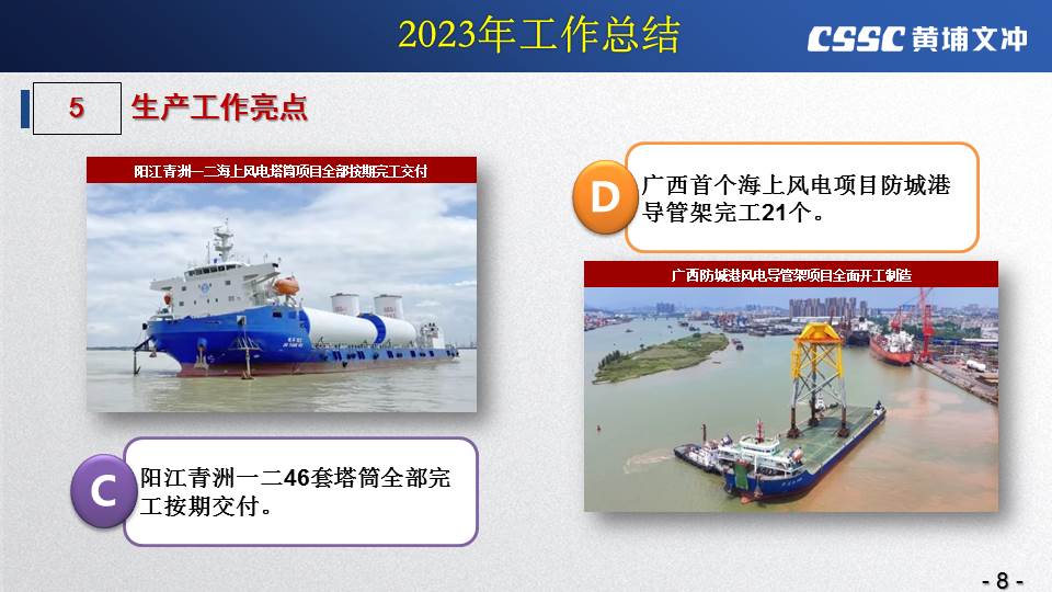 五要加強舾裝件生產組織,要圍繞造船年度目標任務,做好船配舾裝件的提效保供工作,為黃埔文沖公司發展做出更大貢獻。
